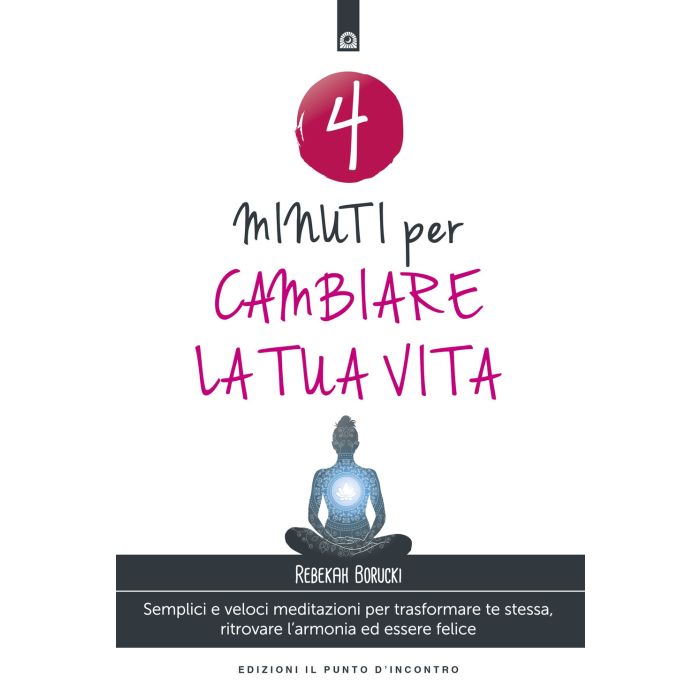 "Non ho tempo per meditare!"... Quante volte hai pronunciato questa frase? Magari ci hai provato, perché sapevi che meditare ti avrebbe fatto bene, ma poi hai lasciato perdere, ricadendo nella solita routine. Eppure ti bastano solo 4 minuti per cambiare la tua vita e trasformare radicalmente la tua quotidianità senza sconvolgere le tue abitudini... solo 4 minuti al giorno! Rebekah Borucki ti aiuta a riprendere il controllo della tua salute fisica e mentale con un'efficace pratica meditativa di soli 4 minuti al giorno. Unendo mantra, affermazioni, respirazione e tecniche corporee, ti aiuterà a ritrovare uno stato di salute e di benessere più profondo e duraturo, fornendoti inoltre utili consigli pratici su dove, come e quando praticare gli esercizi, quale posizione è più indicata, quale affermazione positiva usare ecc. 4 minuti per cancellare lo stress. 4 minuti per aumentare l'autostima. 4 minuti per migliorare le proprie relazioni. minuti per guarire le ferite emotive... "4 minuti per cambiare la tua vita" ti guiderà passo a passo attraverso il benessere e la serenità che stai cercando. Prefazione di Kris Carr.