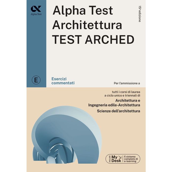 Alpha Test Architettura Test Arched - Esercizi commentati. Per l'ammissione a tutti i corsi di laurea a ciclo unico e triennali di Architettura e Ingegneria edile-Architettura, Scienze dell'architettura. La nuova edizione 2024/2025 di questo volume è specifica per la preparazione ai test di ammissione ai corsi di laurea a ciclo unico in Architettura e Ingegneria edile-Architettura (LM-4) e di laurea triennale in Scienze dell'architettura (L-17). Il libro è dunque valido anche per la prova CISIA Test arched. All'interno del libro: centinaia di quesiti su tutte le materie d'esame, tutti seguiti da commenti esaustivi che riprendono i concetti teorici necessari alla soluzione; spiegazione dei metodi di risposta più rapidi ed efficaci; informazioni sulle prove a test e sui criteri di selezione e valutazione. Il simulatore on line consente di svolgere un numero illimitato di esercitazioni d'esame. Include l'accesso al sistema di e-learning MyDesk: Simulazioni d'esame; Esercitazioni mirate; Tutorial su test e preparazione all'esame.