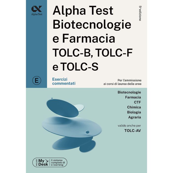 Alpha Test Biotecnologie e Farmacia TOLC-B, TOLC-F e TOLC-S - Esercizi commentati. Per l'ammissione ai corsi di laurea delle aree Biotecnologie, Farmacia, CTF, Chimica, Biologia, Agraria. Valido anche per TOLC-AV. La nuova edizione 2024/2025 di questo volume è valida per la preparazione ai test di ammissione ai corsi di laurea delle aree di Biologia e Biotecnologie (TOLC-B), Scienze naturali (TOLC-S e B), Chimica e Farmacia (TOLC-S, F e B), Agraria e triennali di Veterinaria (TOLC-AV) di tutte le università. All'interno del libro: centinaia di quesiti su tutte le materie d'esame, tutti seguiti da commenti esaustivi che riprendono i concetti teorici necessari alla soluzione; spiegazioni dei metodi di risposta più rapidi ed efficaci; informazioni sulle prove a test e sui criteri di selezione e valutazione. Il simulatore on line consente di svolgere infinite esercitazioni d'esame. Include l'accesso al sistema di e-learning MyDesk: Simulazioni d'esame; Esercitazioni mirate; Tutorial su test e preparazione all'esame.