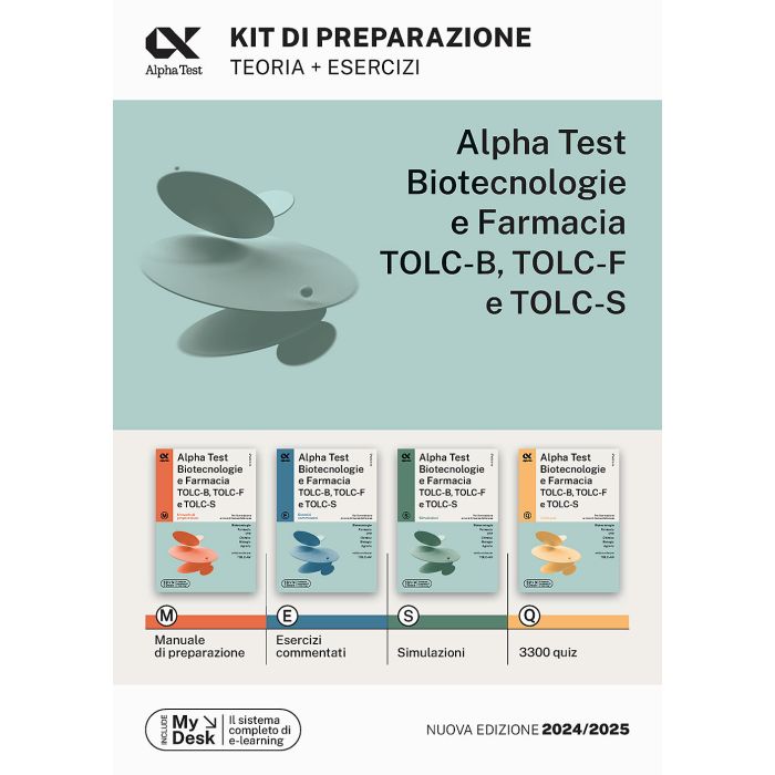 Alpha Test Biotecnologie e Farmacia TOLC-B, TOLC-F e TOLC-S - Kit di preparazione. Per l'ammissione ai corsi di laurea delle aree Biotecnologie, Farmacia, CTF, Chimica, Biologia, Agraria. Valido anche per TOLC-AV. La nuova edizione 2024/2025 del Kit di preparazione è una soluzione completa per prepararsi ai test di ammissione ai corsi di laurea delle aree di Biologia e Biotecnologie (TOLC-B), Scienze naturali (TOLC-S e B), Chimica e Farmacia (TOLC-S, F e B), Agraria e triennali di Veterinaria (TOLC-AV) di tutte le università.