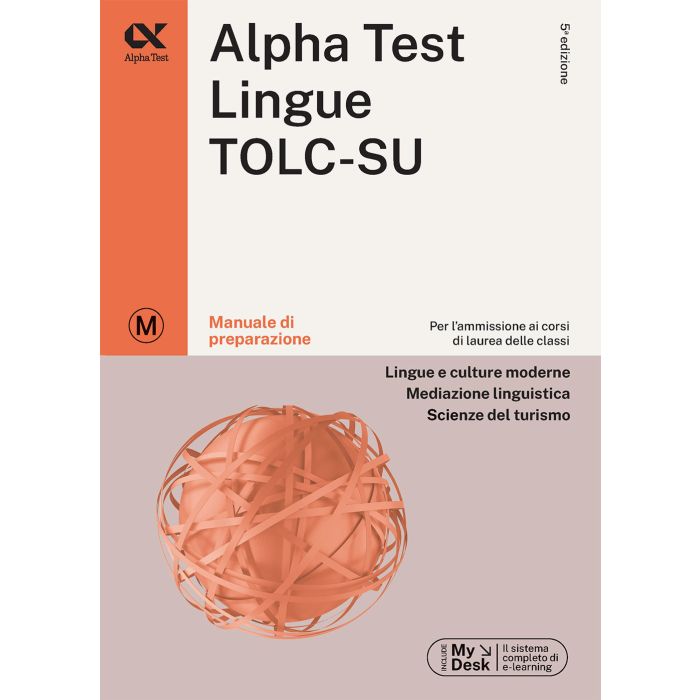 Alpha Test Lingue TOLC-SU - Manuale di preparazione. Per l'ammissione ai corsi di laurea delle classi: Lingue e culture moderne, Mediazione linguistica, Scienze del turismo. La nuova edizione 2024/2025 di questo manuale dedica ampio spazio a ciascuna delle materie presenti nelle prove di ammissione (test di ateneo o TOLC-SU) ai corsi di laurea triennale delle classi Lingue e culture moderne (L-11), Mediazione linguistica (L-12), Scienze del turismo (L-12). Le sezioni di teoria - essenziali e complete - sono accompagnate da centinaia di esercizi risolti e commentati, modellati sui test degli ultimi anni. Il manuale fornisce anche preziose informazioni riguardo a test e criteri di selezione e offre utili suggerimenti pratici su come affrontare la prova (uso ragionato del tempo, strategie risolutive, gestione delle domande più difficili ecc.). Il volume comprende anche un capitolo sviluppato da Alessandro de Concini, divulgatore ed esperto di metodo di studio efficace. Include l'accesso al sistema di e-learning MyDesk: Informazioni aggiornate sui test, Video-lezioni dei docenti Alpha Test, Tutorial su test e preparazione all'esame, Contenuti digitali aggiuntivi (approfondimenti, schemi riassuntivi, formulari ecc.)