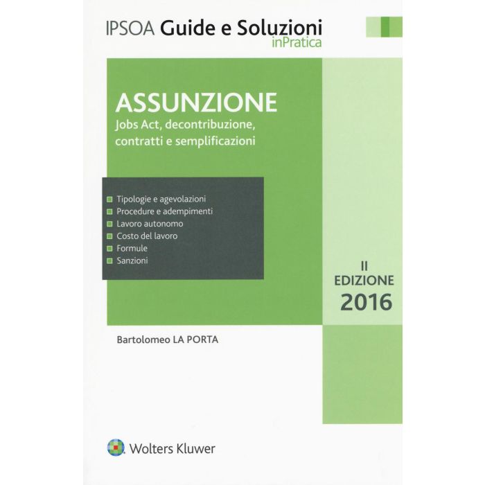 Il volume Assunzione propone e analizza le novità più rilevanti che sono intervenute dopo la riforma del Jobs Act e che hanno determinato un miglioramento del mercato del lavoro. Una indagine volta a approfondire gli aspetti operativi e gli adempimenti legati alle assunzioni, la valutazione degli aspetti determinanti e l'impatto sul costo del lavoro. A completamento di ogni capitolo un prospetto di numerosi modelli di assunzione con analisi del contratto, delle clausole e con la predisposizione delle formule tipiche delle fattispecie più comuni. In questa edizione completamente aggiornata troviamo tra le varie misure previste dal Jobs Act quelle dirette alla decontribuzione delle nuove assunzioni, alla tutela dei licenziamenti, agli ammortizzatori sociali con la nuova Naspi, infine, gli interventi sul superamento delle collaborazioni e il riordino delle tipologie contrattuali.