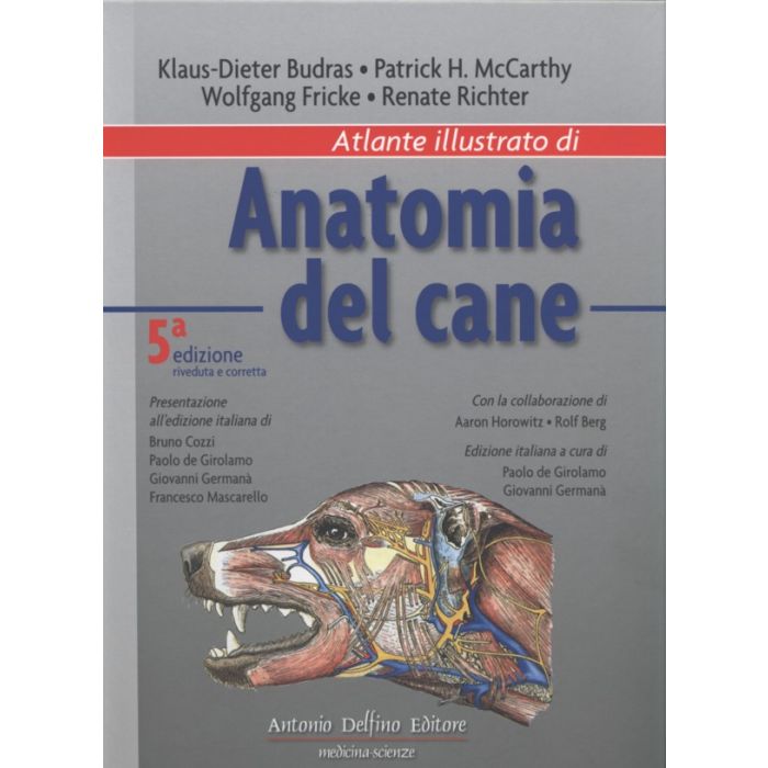 Presentazione all’edizione italiana v Prefazione alla quinta edizione ix Prefazione alla prima edizione tedesca (ridotta) ix Referenze bibliografiche x Introduzione all’anatomia 1 Anatomia topografica Capitolo 1: Superficie del corpo e scheletro assiale 1. Divisione del corpo animale 2 2. Cute (tegumento comune) 4 3. Ghiandole cutanee, modificazioni della cute, organi terminali digitali 6 4. Colonna vertebrale e torace 8 5. Articolazioni della colonna vertebrale e del torace; articolazioni atlanto-occipitale ed atlanto-epistrofica (A. WÜNSCHE e K.-D. BUDRAS) 10 Capitolo 2: Collo e regione pettorale (regione cervicale e toracica) 1. Muscoli cutanei e nervi cutanei del collo e della parete toracica 12 2. Muscoli dorsali estrinseci dell’arto 12 3. Muscoli ventrali estrinseci dell’arto 14 4. Nervi, vasi e organi viscerali del collo 14 Capitolo 3: Arto toracico 1. Lo scheletro dell’arto toracico 16 2. Vene mediali dell’arto toracico; muscoli mediali della spalla e del braccio e loro innervazione 18 3. Vene laterali dell’arto toracico; muscoli laterali della spalla e del braccio e loro innervazione 20 4. Muscoli antibrachiali (dell’avambraccio) e loro innervazione 22 5. Vasi e nervi dell’arto toracico 24 6. Strutture sinoviali dell’arto toracico (A. WÜNSCHE e K.-D. BUDRAS) 26 Capitolo 4: Parete toracica ed addominale 1. Muscoli della colonna vertebrale, legamento nucale e nervi cutanei lombari 28 2. Muscoli respiratori 30 3. Parete del corpo, prepuzio e ghiandole mammarie (Mammae) 32 4. Muscoli addominali, guaina del retto, tendine prepubico 34 5. Regione inguinale, spazio inguinale (canale inguinale), lacune neuromuscolari e vascolari 36 Capitolo 5: Cavità toracica 1. Polmoni, biforcazione della trachea e bronchi 38 2. Vasi sanguigni, nervi e sistema linfatico dei polmoni; arco aortico; linfonodi della cavità toracica, timo 40 3. Cavità toracica, pleura e vene della cavità toracica 42 4. Cuore, superficie del cuore, parete cardiaca e rapporti interni del cuore 44 5. Cuore, vasi coronarici, valvole cardiache, sistema di conduzione cardiaco 46 6. Sistema nervoso autonomo 48 Capitolo 6: Cavità addominale 1. Topografia degli organi addominali e rapporti del peritoneo 50 2. Cavità peritoneale, linfonodi dello stomaco e dell’intestino, cysterna chili e milza 52 3. Stomaco e piccolo intestino, pancreas 54 4. Grosso intestino, vasi sanguigni dello stomaco e dell’intestino 56 5. Fegato e cistifellea (H. BRAGULLA e K.-D. BUDRAS) 58 6. Sistema nervoso autonomo, aorta addominale, vena cava caudale, muscoli sottolombari e plesso lombare 60 Capitolo 7: Organi urinari e genitali, pelvi 1. Organi urinari 62 2. Vescica urinaria e rapporti peritoneali degli organi genitali 64 3. Organi genitali femminili 66 4. Organi genitali maschili, sistema linfatico delle regioni lombare e pelvica 68 5. Arterie, vene e nervi della cavità pelvica, ghiandole surrenali 70 6. Diaframma pelvico, fossa ischiorettale; arterie, vene e nervi associati 72 7. Muscolatura liscia del diaframma pelvico e cintura ossea pelvica 74 Capitolo 8: Arto pelvico 1. Lo scheletro dell’arto pelvico 76 2. I muscoli dell’articolazione dell’anca e loro innervazione 78 3. La vena safena mediale, il nervo otturatore, il nervo femorale, i muscoli mediali della coscia e lo spazio femorale (canale femorale) 80 4. La vena safena laterale, il nervo peroneo comune e il nervo tibiale; i muscoli della gamba ed i muscoli poplitei 82 5. Arterie, vene e nervi dell’arto pelvico 84 6. Strutture sinoviali dell’arto pelvivo (S. REESE e K.-D. BUDRAS) 86 Capitolo 9: Testa 1. Cranio, incluso l’apparato ioideo 88 2. Cranio, seni paranasali 90 3. Sistema linfatico, vene superficiali della testa, nervo facciale (VII) 92 4. Muscoli facciali e muscoli mandibolari 94 5. Muscoli interni (profondi) della masticazione, nervo trigemino (V), nervo mandibolare (V3), nervo mascellare (V2) 96 6. Apparato lacrimale, nervo ottico (II), nervo oftalmico (V1), nervi e muscoli dell’occhio, ed esterni del naso 98 7. Naso, laringe, cavità orale e faringe 100 8. Muscoli faringei, nervi cranici del gruppo del vago (IX, X, XI), sistema nervoso autonomo della testa, arterie della testa, meato acustico esterno 102 9. Lingua, muscoli della lingua, nervo ipoglosso (XII), ghiandole salivari e dentizione 104 10. Articolazioni della testa (S. REESE e K.-D. BUDRAS) 106 Capitolo 10: Sistema nervoso centrale 1. Midollo spinale e meningi 108 2. Cervello (Encephalon) e i suoi rivestimenti meningei 110 3. Cervello (Telencephalon), tronco encefalico e sistema limbico 112 4. Rinencefalo, siti di emergenza dei nervi cranici, irrorazione arteriosa del cervello 114 5. Vene cerebrali, seni della dura madre, ventricoli cerebrali e plessi corioidei 116 Capitolo 11: Organi di senso 1. L’occhio (P. SIMOENS e K.-D. BUDRAS) 118 2. L’orecchio (H. KÖNIG e K.-D. BUDRAS) 120 3. Sensi dell’olfatto e del gusto (chimico); sensibilità superficiale, profonda e viscerale 122 Tabelle: Anatomia speciale 1. Miologia 124 2. Linfologia 134 3. Nervi cranici (C. HERRMANN e K.-D. BUDRAS) 136 Anatomia generale 1. Osteologia: ossificazione membranosa e condrale; crescita delle ossa in lunghezza e diametro 140 2. Osteologia: struttura e forma dell’osso e della cartilagine 142 3. Artrologia: le connessioni tra le ossa e la forma delle articolazioni 144 4. Miologia: miologia generale 146 5. Miologia: muscolatura scheletrica e sue strutture accessorie 148 6. Sistema nervoso 150 7. Sistema endocrino 152 8. Sistema cardiovascolare (R. HIRSCHBERG) 154 9. Sistema linfatico (H.-G. LIEBICH e K.-D. BUDRAS) 156 10. Ghiandole, tonache mucose e tonache sierose 158 Un’introduzione alle basi fisico-tecniche della diagnostica a raggi X e ad ultrasuoni (C. Poulsen Nautrup) 160 Introduzione alla tomografia computerizzata (C. Nöller) 176 Anatomia della scansione TC 178 Contributi all’anatomia clinica e funzionale 180 Indice analitico 212 |