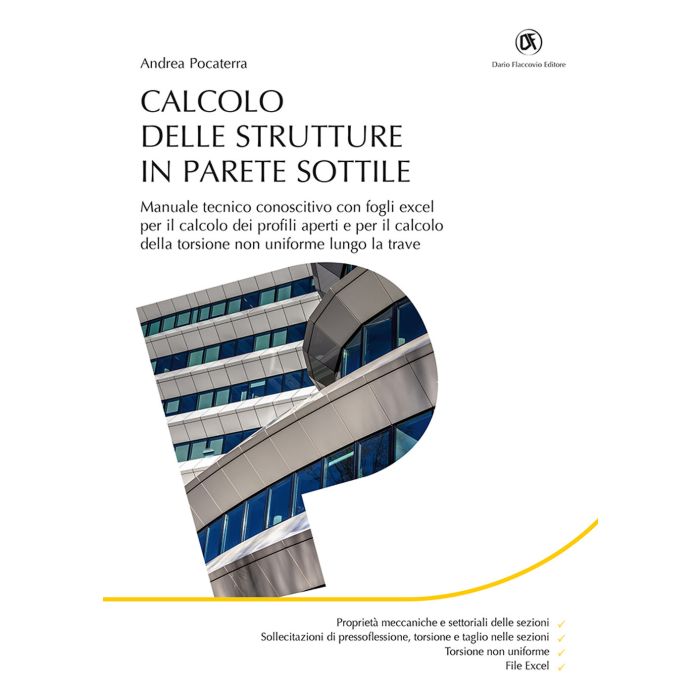 Non presente in questa sintesi nella letteratura tecnica nel campo dell'ingegneria strutturale, questo testo tratta del calcolo delle caratteristiche e delle tensioni nelle sezioni in parete sottile, costituite da un insieme di elementi assimilabili a rettangoli, quali ponti a cassoni, profili aperti e chiusi per traverse e montanti di tralicci metallici, paratie, lamiere ondulate, canali aerei di irrigazione oltre alle travi di suo comune. Viene introdotta in maniera semplificata la problematica della torsione non uniforme e il suo impatto nell'incremento delle tensioni normali e tangenziali, quasi sempre omesso nelle relazioni di calcolo, che può portare una struttura a superare i limiti di resistenza ammessi dalle normative vigenti. I file excel sono scaricabili dal sito.