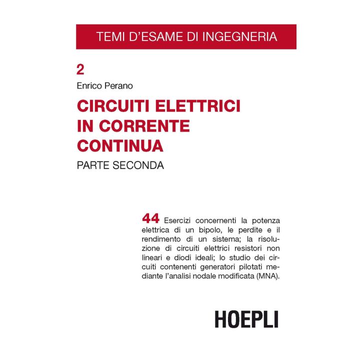 44 esercizi concernenti la potenza elettrica di un bipolo, le perdite e il rendimento di un sistema; la risoluzione di circuiti elettrici resistori non lineari e diodi ideali; lo studio dei circuiti contenenti generatori pilotati mediante l'analisi nodale modificata (MNA).