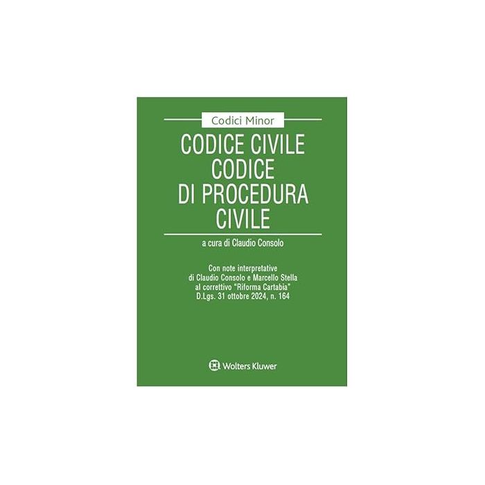 Con note interpretative di Claudio Consolo e Marcello Stella al correttivo "Riforma Cartabia" D.Lgs. 31 ottobre 2024, n. 164l volume contiene il testo del Codice civile e del Codice di procedura civile e delle relative disposizioni di attuazione. I codici sono aggiornati con il Correttivo alla Riforma Cartabia (D.Lgs. 31 ottobre 2024, n. 164), con note interpretative al Correttivo.