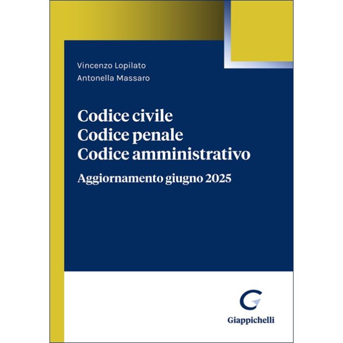 Questo volume riunisce in un'unica opera gli aggiornamenti al Codice Civile, Codice Penale, Codice Amministrativo con tutte le principali novità normative introdotte da luglio 2024 ad oggi. Nato per offrire un quadro sinottico e aggiornato del sistema legislativo italiano, il testo è progettato per essere sintetico, compatto e facilmente consultabile, ideale per affrontare concorsi pubblici e prove selettive. Il volume è conforme alle disposizioni sul rinvio normativo (r.d. 1925, n. 1860), ed è ammesso nei concorsi pubblici.