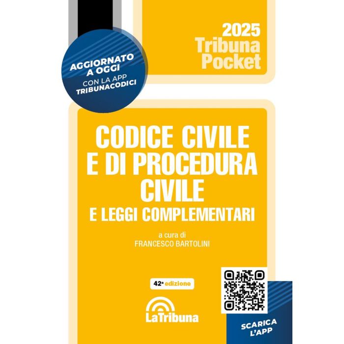 Quest'opera fornisce ai lettori il testo aggiornato del Codice civile, del Codice di procedura civile e delle principali leggi complementari. La selezione delle leggi complementari comprende materie fra le quali segnaliamo: Fallimento e crisi di impresa; Lavoro; Locazioni; Matrimonio; Mediazione; Negoziazione assistita; Semplificazione dei riti civili. Aggiornato con il correttivo alla Riforma Cartabia del processo civile (Decreto Legislativo 31 ottobre 2024, n. 164).