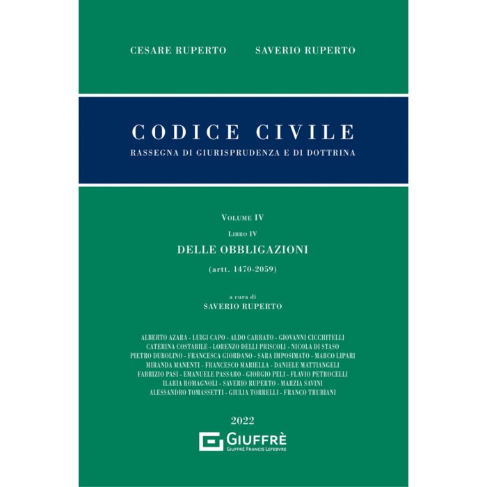 Il Codice civile. Rassegna di giurisprudenza e di dottrina si presenta in una edizione rinnovata, sia nello sviluppo della trattazione - che si svolge in 6 volumi - che nella squadra di autori di cui si avvale, selezionati tra i più autorevoli magistrati, accademici e avvocati, guidati da Saverio Ruperto che si affianca alla storica direzione di Cesare Ruperto. Un'esposizione ragionata della giurisprudenza sul codice civile, sulla base della tradizionale struttura che vede gli articoli del codice corredati da proprie bibliografie atte a segnalare al lettore i maggiori titoli di riferimento per approfondire le tesi dottrinali specifiche e sommari numerati per individuare i singoli argomenti trattati, il tutto dettagliato in precisi indici analitici allestiti per ciascun volume. Mantenendo l'originaria impostazione di raccolta di massime tratte dalle decisioni più significative della Corte Suprema e dei giudici di merito, in un confronto costante con l'interpretazione dottrinale, che non svolge ruolo secondario nell'applicazione del diritto, la Rassegna segnala i contrasti in atto e le soluzioni delle Sezioni Unite della Corte di cassazione, esponendo l'indirizzo attuale sulle singole questioni e citando le riviste in cui le sentenze risultano pubblicate, precisando le eventuali note a sentenza come conformi o contrarie all'indirizzo esposto. La disciplina sostanziale è puntualmente aggiornata agli interventi legislativi che negli anni si sono susseguiti, fino alle più recenti novità, tra cui la riforma che prevede l'ampliamento della competenza del Giudice di Pace, che acquisirà efficacia a partire dal 31 ottobre 2025 (d.lgs. 13 luglio 2017 n. 116, da ultimo modificato dal d.l. 30 dicembre 2019 n. 162, conv. con modif. in l. 28 febbraio 2020 n. 8); le modifiche in materia di corruzione tra privati (ai sensi della l. 9 gennaio 2019 n. 3); l'incidenza delle misure adottate dal Governo durante l'emergenza epidemiologica da Covid-19; la nuova disciplina sulla crisi d'impresa (dal d.lgs. n. 14/2019, passando per l'emanazione del correttivo d.lgs. 26 ottobre 2020 n. 147, fino all'ultimo d.l. n. 118 del 24 agosto 2021, che ne rinvia l'entrata in vigore al 2022).