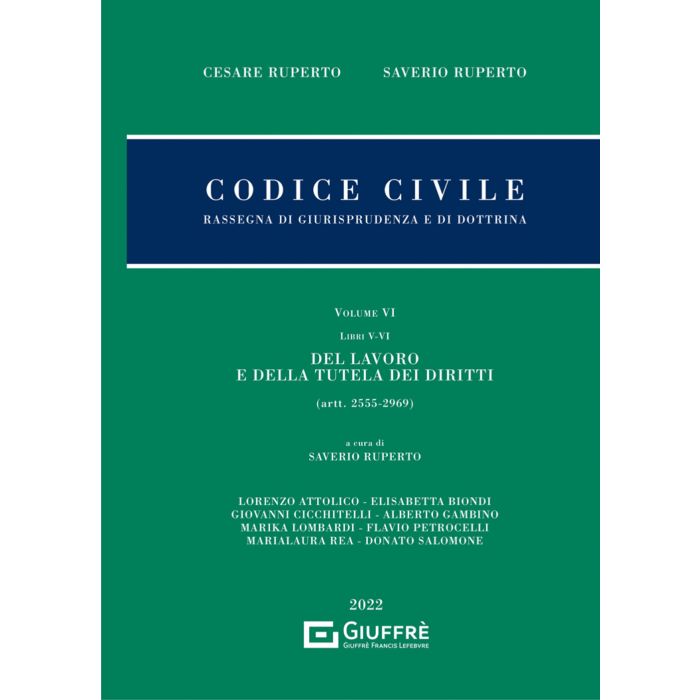 Volume VI. Libro V – Del lavoro (artt. 2555-2642) e Libro VI – Della tutela dei diritti (artt. 2643-2969).