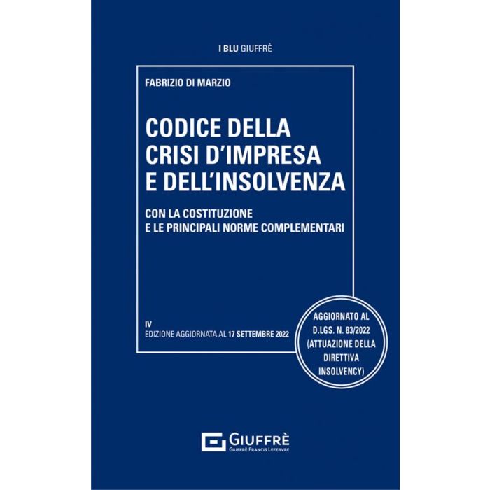 Giunto alla IV edizione, il Codice della crisi d'impresa e dell'insolvenza, a cura di F. Di Marzio, viene riproposto in una versione profondamente riveduta e aggiornata. Innanzitutto con l'inclusione del Nuovo codice della crisi, che reca in nota la stratificazione dei testi previgenti, derivanti dalle numerose modifiche intervenute sul testo di questo codice prima che entrasse in vigore il 15 luglio 2022. L'ultima e più importante di queste modifiche è relativa al cosiddetto decreto correttivo n. 83 del 2022 (in attuazione della direttiva "insolvency"). Seguono sezioni intitolate a: fallimento e concordato preventivo, liquidazione coatta amministrativa, banche e assicurazioni, normativa europea e spese di giustizia. La presente edizione è aggiornata a: L. 4 agosto 2022, n. 122, di conversione del D.L. n. 73/2022 (decreto semplificazioni 2022); L. 29 giugno 2022, n. 79, di conversione del D.L. n. 36/2022 (misure per l'attuazione del Piano nazionale di ripresa e resilienza - PNRR); D.Lgs. 17 giugno 2022, n. 83 (modifiche al codice della crisi d'impresa e dell'insolvenza). Infine, un dettagliato indice analitico e l'indice cronologico delle norme collegate consentono di rintracciare con rapidità gli argomenti e le norme di interesse.