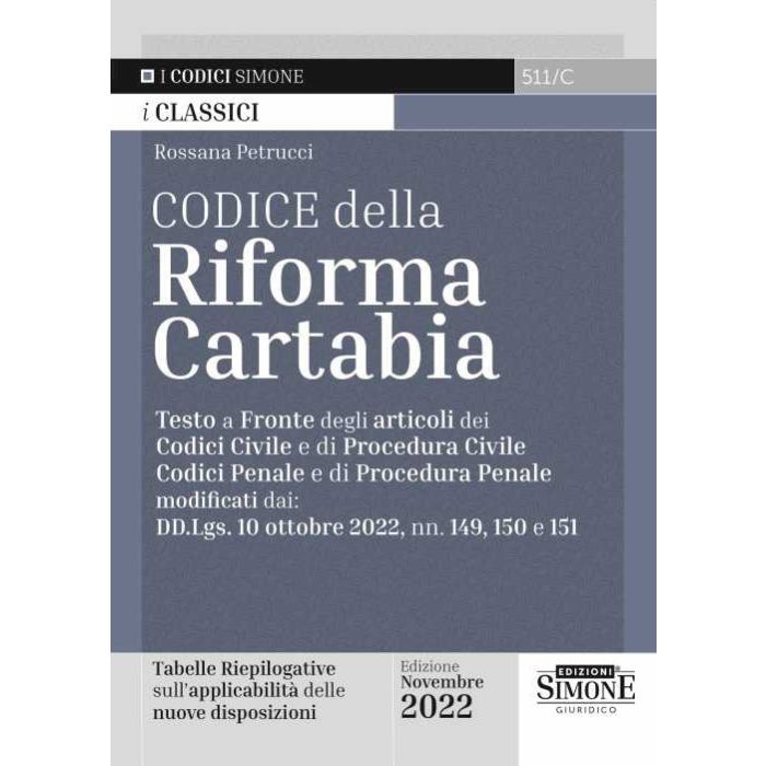 Con i decreti legislativi del 10 ottobre 2022, nn. 149, 150 e 151 gli ordinamenti civile e penale hanno conosciuto, soprattutto (ma non solo) sul versante processuale, una imponente opera di revisione, che passerà alla storia come Riforma Cartabia. La principale ambizione del presente Codice della Riforma Cartabia è proprio quella di offrire agli operatori del diritto (avvocati, magistrati e/o studenti) un quadro d'insieme organico ed esaustivo, all'esito di un'attenta e capillare opera di coordinamento delle novità normative con le disposizioni vigenti. Il Codice della Riforma Cartabia consente di individuare agilmente le modifiche introdotte grazie all'uso del colore (sono riportate in rosso tutte le modifiche apportate dai decreti attuativi citati) sia quelle immediatamente operative sia quelle che, nel settore civile, lo saranno in forza del fitto reticolo di disposizioni transitorie che hanno accompagnato la massiccia novellazione. Quanto al settore penale, invece, si è tenuto conto del rinvio operato dal D.L. 31 ottobre 2022, n. 162, che ha differito al 30 dicembre 2022 l'entrata in vigore dell'intero decreto legislativo n. 150, per ovviare alle difficoltà connesse all'assenza di adeguate norme transitorie che diluissero nel tempo l'operatività delle numerose innovazioni. Per agevolare la consultazione del testo, delle pratiche Tabelle Riepilogative sull'Applicabilità delle Nuove Disposizioni sono riportate alla fine del libro.