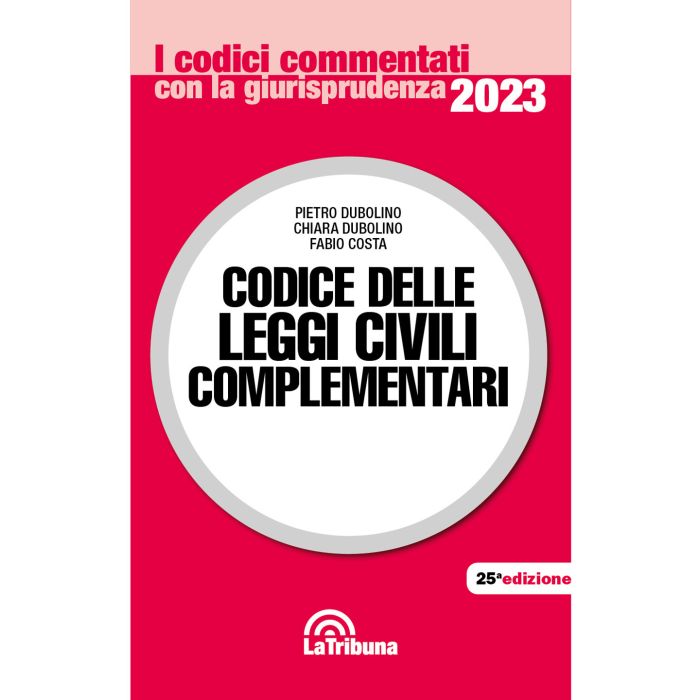 Quest'opera fornisce ai lettori il testo aggiornato delle principali leggi complementari al Codice civile. La selezione delle leggi complementari comprende materie fra le quali segnaliamo: Adozione; appalti pubblici; Assicurazioni; Cittadinanza; Commercio elettronico; Contratti agrari; Crisi di impresa; Divorzio; Intermediazione finanziaria; Lavoro; Locazioni; Matrimonio; Mediazione; Sovraindebitamento; Titoli di credito; Tutela dei consumatori e class action.