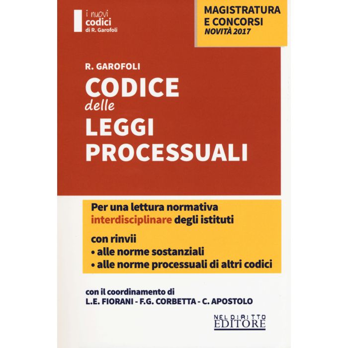 Sempre più spesso il diritto sostanziale e quello processuale vengono in considerazione in modo congiunto ed unitario in sede di trattazione degli istituti e di soluzione delle questioni interpretative. Ebbene, l'Opera garantisce un'originale consultazione dei Codici di procedura civile, procedura penale e del processo amministrativo e un'agevole ed utilissima individuazione dei collegamenti tra le relative disposizioni e quelle del diritto sostanziale. Il Codice è, invero, caratterizzato da un innovativo apparato di note con l'inserimento, sotto ciascuna disposizione, di: - rinvii alle norme di diritto sostanziale collegate; - rinvii alle altre norme processuali anche contenute in differenti discipline processuali (c.p.c. -> c.p.p.; c.p.c. -> c.p.a.; c.p.a. -> c.p.c; c.p.p. -> c.p.c), utili per cogliere i collegamenti tra i differenti sistemi processuali e per assicurare quell'approccio interdisciplinare da sempre richiesto dalle Commissioni di concorso.