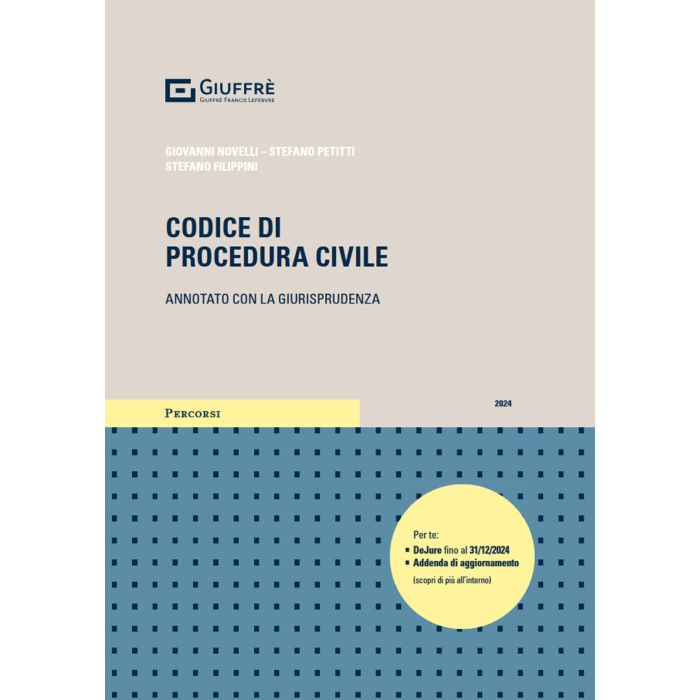 Il Codice di procedura civile annotato, giunto alla XIX edizione - curato da Giovanni Novelli, Stefano Petitti e Stefano Filippini - è strutturato per rispondere al meglio alle esigenze degli aspiranti avvocati e dei professionisti del diritto, garantendo la soluzione immediata del caso concreto e offrendo un percorso ragionato per la redazione di atti giudiziari e pareri motivati.