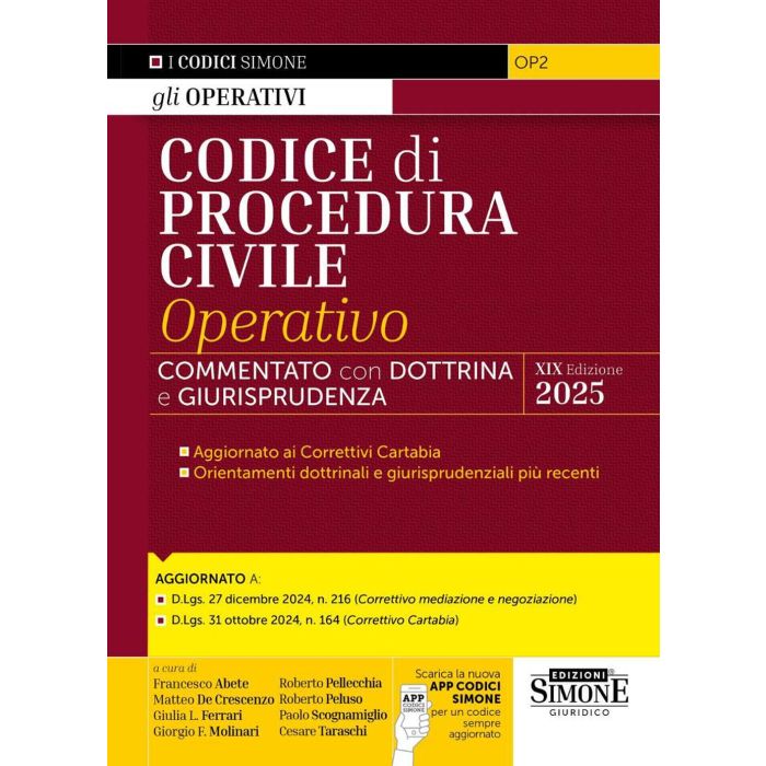 Codice di procedura civile operativo 2025. Annotato con dottrina e giurisprudenza. Con App Codici Simone e aggiornamento online (Codici Operativi)