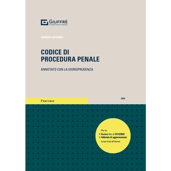 Il Codice di procedura penale annotato, giunto alla XX edizione, curato dal Pres. Giorgio Lattanzi, è strutturato per rispondere al meglio alle esigenze degli aspiranti avvocati e dei professionisti del diritto, garantendo la soluzione immediata del caso concreto e offrendo un percorso ragionato per la redazione di atti giudiziari e pareri motivati. Anche con le nuove procedure di sostenimento dell'esame, il Codice è risultato essere un ottimo strumento di ausilio a chi ha affrontato la prima prova, proprio per la semplicità e la rapidità di consultazione che lo distinguono. Il Codice si caratterizza per: * l'articolato vigente, aggiornato alle ultime novità intervenute in materia - tra le tante, la legge "Nordio" - con specifici richiami alla normativa correlata; * un'accurata e ricca selezione della giurisprudenza più significativa e indispensabile in sede d'esame, aggiornata alle sentenze più recenti, organizzata secondo un percorso guidato tra tutte le massime costituzionali, di legittimità e di merito, mediante un'attenta articolazione in paragrafi delle questioni affrontate; * un'efficace visibilità degli orientamenti conformi e difformi e delle decisioni delle Sezioni Unite; * gli indici dettagliati per rendere più agevole la ricerca. Il Codice è arricchito da un'Appendice legislativa, con le disposizioni del d.lgs. 28 agosto 2000, n. 274, sulla competenza penale del giudice di pace, anch'esse annotati con la giurisprudenza. Tieniti aggiornato sul sito www.praticantieconcorsi.it.