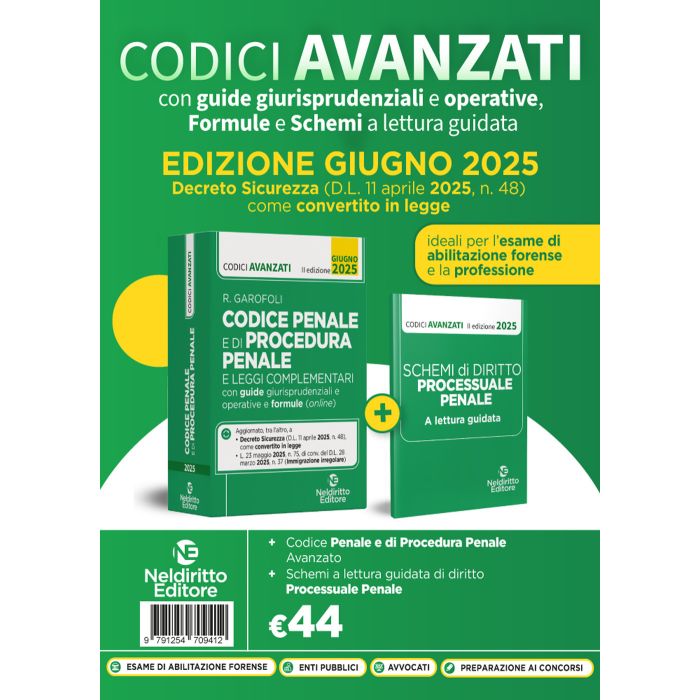 Codice penale e di procedura penale avanzato, con guide giurisprudenziali e operative, formule e schemi a lettura guidata aggiornato al DL sicurezza convertito in legge Giugno 2025. Con espansione online - Garofoli - Neldiritto