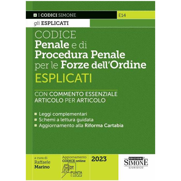 Il «Codice Penale e di Procedura penale per le Forze dell’Ordine Esplicati» costituisce un valido strumento per tutti gli operatori delle Forze dell’Ordine (Polizia di Stato, Arma dei Carabinieri, Guardia di finanza, nonché Polizia penitenziaria e Forze di Polizia locale) che hanno la necessità di consultare un testo codicistico aggiornato e corredato da un agile commento esplicativo che illustra il dato normativo, anche in vista della corposa Riforma Cartabia (D.Lgs. 150/2022) che ha introdotto numerose novità in materia penale, sia sostanziale che processuale.