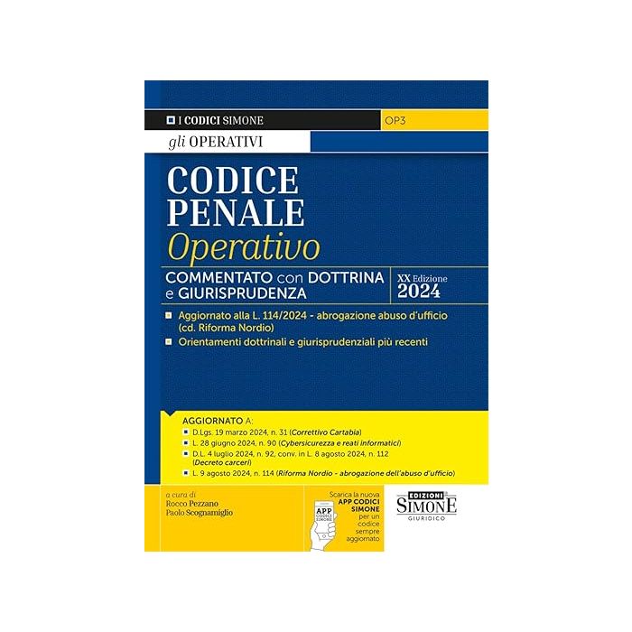 AGGIONAMENTI: Commentato con Dotttrina e Giurisprudenza – Aggiornato alla L. 114/2024 – abrogazione abuso d’ufficio (cd. Riforma Nordio) – Orientamenti dottrinali e giurisprudenziali più recenti – Aggiornato a: D.Lgs. 19 marzo 2024, n. 31 (Correttivo Cartabia) – L. 28 giugno 2024, n. 90 (Cybersicurezza e reati informatici) – D.L. 4 luglio 2024, n. 92, conv. in L. 8 agosto 2024, n. 112 (Decreto carceri) – L. 9 agosto 2024, n. 114 (Riforma Nordio – abrogazione dell’abuso d’ufficio) – Scarica la nuova APP CODICI SIMONE per un codice sempre aggiornato