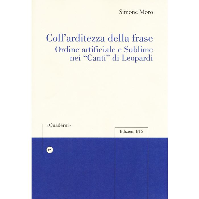 Se i "Canti" di Giacomo Leopardi sono una delle opere capitali della poesia moderna è perché hanno saputo realizzarne aspetti per così dire archetipici. Uno di questi è senz'altro la lingua, che Leopardi indaga sui testi degli autori che lo hanno preceduto, discute sul piano teorico, e infine configura in modo nuovo e personale. In questo saggio Simone Moro si occupa di uno degli elementi peculiari della lingua poetica dei "Canti": l'ordo artificialis delle parole, studiato nelle sue forme grammaticali e retoriche per rivelarne i valori stilistici e poetici, in relazione alle dichiarazioni dello Zibaldone sugli ardiri e lo stile sublime. La poesia si è sempre servita di artifici quali iperbati, anastrofi, epifrasi e sinchisi, e in epoca neoclassica il loro utilizzo sistematico ha configurato un vero e proprio programma letterario. Perché allora Leopardi, che si propone di dare all'Italia una poesia nuova e moderna, recupera stilemi tanto tradizionali? Come li impiega all'interno dei testi? Quale significato espressivo racchiude una scelta maturata in rapporto consapevole con la poesia del passato e il panorama poetico del suo tempo? Un'analisi stilistica svolta sui "Canti" e insieme aperta a un confronto con alcuni capisaldi della tradizione suggerisce delle risposte a simili domande, e offre un'interpretazione rinnovata di alcuni testi dell'opera: delle canzoni iniziali, ovviamente, ma anche di capolavori di più ampio respiro come la "Ginestra".