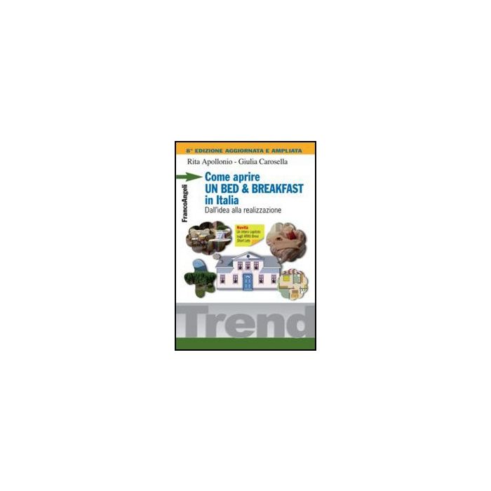 | Indice | Introduzione Le strutture ricettive in Italia: classificazione e cifre (Gli alberghi; Gli esercizi di affittacamere; Case e appartamenti per vacanze; Le residenze turistico-alberghiere - RTA; Alloggi agrituristici; Il Bed & Breakfast) Dall'idea alla realizzazione (Le fasi;) La casa (Com'è; Come dovrebbe essere; Cosa fare; Suggerimenti d'arredo) I servizi offerti (I servizi di base; I servizi di arricchimento; Ulteriori servizi) L'operatore di B&B (Requisiti generali; Attitudini personali; Le conoscenze tecniche; La formazione) Il territorio come risorsa (Aspetti del territorio che riguardano lo sviluppo turistico; Dove raccogliere le informazioni?; Come comunicarle?; Itinerari turistici) La promozione e la commercializzazione del B&B (La promozione; La commercializzazione) Le leggi italiane che riguardano il Bed & Breakfast (Gli enti pubblici e le leggi sul turismo; Lo stato dell'arte del B&B in Italia; Le leggi specifiche sul B&B; Altri obblighi) L'unione fa la forza (Motivazioni psicologiche; Motivazioni pratiche; I circuiti e le associazioni in Italia; I circuiti e le associazioni all'estero) Gli Short Lets (Un trend in ascesa; Dalla parte della legge; Bed and Breakfast e Short Lets a confronto; La domanda; La commercializzazione e la politica tariffaria; Una comunicazione mirata). |
