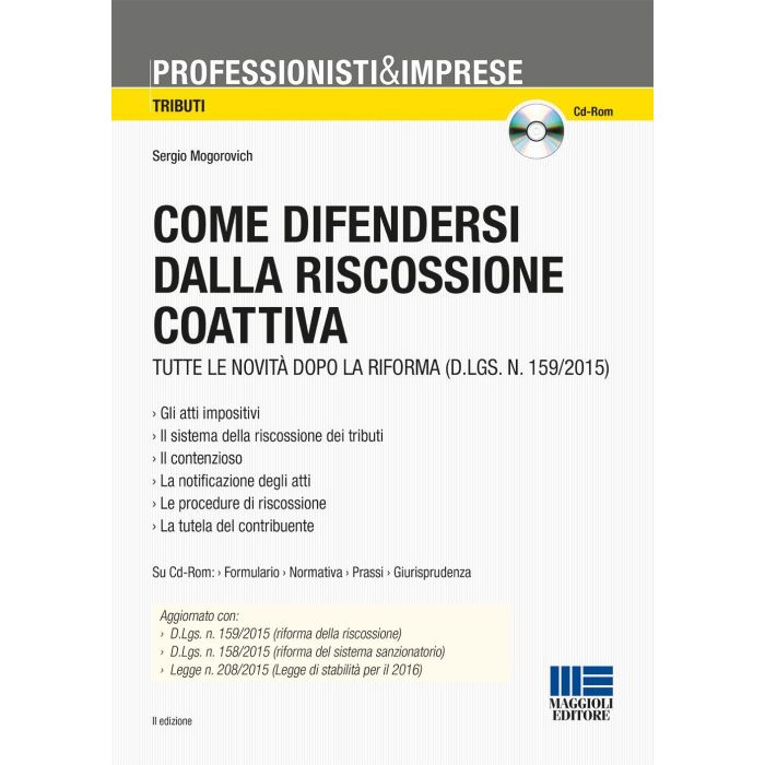 Il manuale guida il lettore alla migliore interpretazione delle procedure di riscossione coattiva e alla più chiara conoscenza di quelli che sono gli strumenti, le attività e i poteri dell'agente della riscossione, in modo da poter predisporre le opportune contromosse difensive stragiudiziali e giudiziali e tutelare nel migliore dei modi la posizione del contribuente, oggetto di pretese da parte dell'Amministrazione Finanziaria. La trattazione si svolge in maniera schematica ma operativa, con il supporto dei richiami di giurisprudenza per ciascuna problematica, rappresentando una sorta di vademecum sintetico. Sul Cd-Rom allegato, un formulario personalizzabile con i fac-simili degli atti di più frequente utilizzo ed una raccolta della più recente normativa, prassi e giurisprudenza di settore. L'edizione è aggiornata con: il D.Lgs. n. 159/2015 (Misure per la semplificazione e razionalizzazione delle norme in materia di riscossione); il D.Lgs. n. 158/2015 (Revisione del sistema sanzionatorio); La Legge n. 208/2015 (Legge di stabilità per il 2016).
