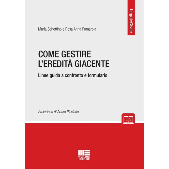 Il presente volume vuole offrire una pratica guida all'operatore che intenda affacciarsi al non sempre agevole incarico di curatore dell'eredità giacente. Attraverso il confronto delle linee guida e la ricognizione delle prassi in uso in numerosi uffici giudiziari, il lettore viene guidato lungo tutto l'iter del procedimento di giacenza ereditaria, dai suoi presupposti alla sua conclusione, fino alle problematiche e questioni più frequenti che si manifestano nelle fasi successive alla chiusura. L'utilità di una raccolta organica risponde all'esigenza di proporre le migliori prassi forensi e mappare le procedure che spesso differiscono in modo significativo all'interno dei singoli distretti giudiziari. Completano il volume un Formulario, disponibile anche online in formato editabile, e una sezione dedicata alle risposte ai quesiti più frequenti.