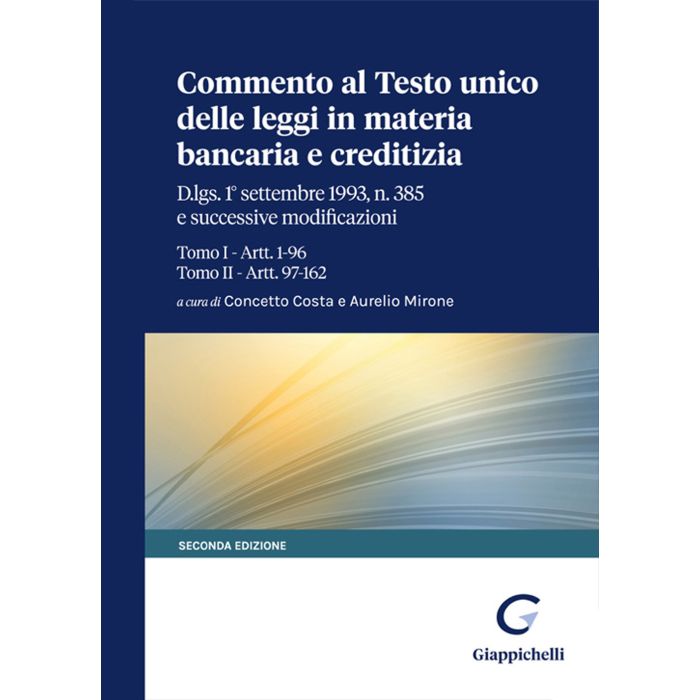Commento al Testo unico delle leggi in materia bancaria e creditizia. D.lgs. 1° settembre 1993, n. 385 e successive modificazioni. Tomo I-Artt. 1-96. Tomo II-Artt. 97-162 [Costa Concetto; Mirone Aurelio - Giappichelli]