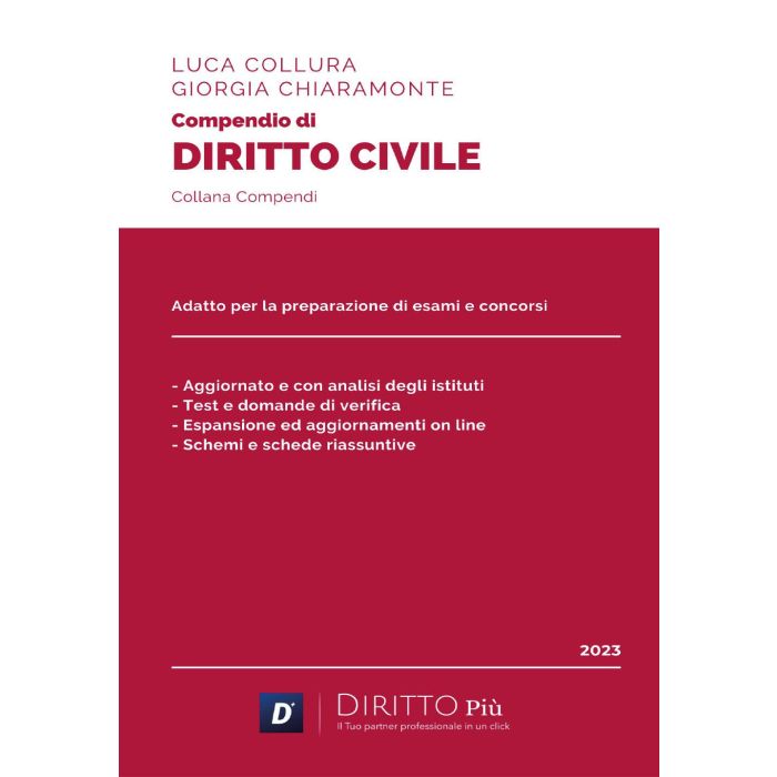 La nuova collana di compendi Diritto Più affronta in maniera sistematica tutti gli istituti, è arricchita da puntuali richiami alla dottrina ed alla giurisprudenza più recente e rappresenta un valido strumento di preparazione tanto per esami universitari che per concorsi pubblici.Inoltre la collana di compendi si espande anche on line, e si aggiorna periodicamente, grazie agli aggiornamenti digitali accessibili mediante QR CODE, alle mappe concettuali, alle possibili domande d'esame e test di verifica alla fine di ogni capitolo a risposta multipla con soluzioni in digitale per valutare velocemente il livello di comprensione. Rappresentano un valido strumento professionale per ogni qualsivoglia concorso ed esame cui oggetto del programma di studio del presente compendio.