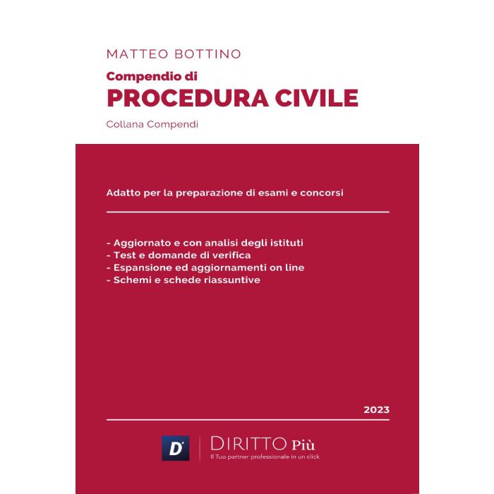 La nuova collana di compendi Diritto Più affronta in maniera sistematica tutti gli istituti, è arricchita da puntuali richiami alla dottrina ed alla giurisprudenza più recente e rappresenta un valido strumento di preparazione tanto per esami universitari che per concorsi pubblici. Inoltre la collana di compendi si espande anche on line, e si aggiorna periodicamente, grazie agli aggiornamenti digitali accessibili mediante QR CODE, alle mappe concettuali, alle possibili domande d'esame e test di verifica alla fine di ogni capitolo a risposta multipla con soluzioni in digitale per valutare velocemente il livello di comprensione. Rappresentano un valido strumento professionale per ogni qualsivoglia concorso ed esame cui oggetto del programma di studio del presente compendio.