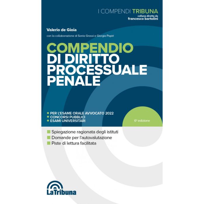 Il Compendio di Diritto processuale penale, espone in sintesi, ma con estrema chiarezza ed esaustività, tutta la materia normalmente oggetto di esami universitari o di prove di concorso e dà ampio spazio agli orientamenti della dottrina e della giurisprudenza. Gli aspetti salienti della disciplina sono evidenziati attraverso l'uso di piste di lettura a margine del testo. Si avvale, inoltre, di apparati didattici che permettono di ottimizzare l'apprendimento e di avere a disposizione, in un unico volume, molteplici strumenti di studio e di riepilogo della materia (schemi per ricapitolare l'argomento studiato e favorirne l'apprendimento, domande di fine capitolo, che propongono le più frequenti domande d'esame).