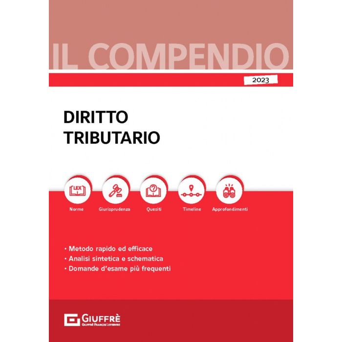 I compendi GFL consentono di apprendere i concetti chiave e la sostanza di ogni materia per uno studio efficace. Grazie alla loro struttura innovativa e alla completezza degli argomenti, rappresentano strumenti indispensabili per affrontare con successo concorsi, esami universitari e di abilitazione. Il compendio di diritto tributario è aggiornato alle principali novità della legge di bilancio 2023. Ogni compendio si caratterizza per le icone che permettono di inquadrare e memorizzare all'istante: le norme di riferimento, la giurisprudenza di rilievo, i dubbi e la soluzione, i concetti-chiave, il focus di approfondimento, la timeline con l'evoluzione dell'istituto, le nozioni in evidenza.