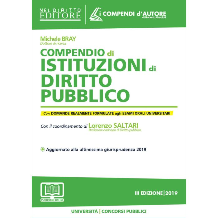 Il Compendio di istituzioni di diritto pubblico, di Michele Bray, si inserisce nella collana “I Compendi d’Autore”, destinata a chi si appresta alla preparazione degli esami orali per l’università, per Avvocato, per il concorso di Magistrato e per i concorsi pubblici.