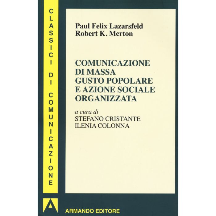 Stati Uniti, 1948: due sociologi scrivono a quattro mani un breve saggio che diventa immediatamente un classico della teoria della comunicazione. I due sociologi sono Paul Lazarsfeld, Robert Merton. Il saggio ha un titolo che è già un indirizzo di ricerca: Comunicazioni di massa, gusto popolare e azione sociale organizzata. Si tratta di uno dei primi tentativi di raccogliere le esperienze di ricerca sui media fissando coordinate teoriche solide. In quegli anni, appena successivi alla fine della seconda guerra mondiale, stampa popolare, radio e cinema attiravano milioni di consumatori, grazie ai quali era stato possibile organizzare un'industria culturale progressivamente sempre più radicata. In questo testo Lazarsfeld e Merton mettono a fuoco e ridimensionano entusiasmi e preoccupazioni sui mass media ed elaborano una teoria su come siano impostati i mezzi di comunicazione, descrivendo quali funzioni essi assolvano nella società a loro contemporanea.