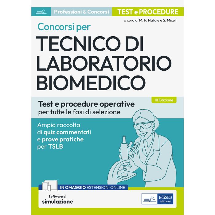 Il volume propone una vasta raccolta di quesiti e procedure per la preparazione alle prove di selezione dei concorsi per Tecnico sanitario di laboratorio biomedico (TSLB). Il testo, dopo un capitolo introduttivo sulle norme concorsuali, comprende: Quesiti a risposta multipla commentati sulla legislazione e l'organizzazione del sistema sanitario e sulle competenze professionali; Prove pratiche incentrate su specifiche procedure diagnostiche di cui si chiede la ricostruzione; Esercitazioni consistenti in batterie di quiz di cui si fornisce la sola risposta esatta; Quiz ufficiali somministrati in diverse prove d'esame; Quesiti sulle competenze linguistiche (inglese) e informatiche. I quiz attinenti alle competenze professionali sono suddivisi nelle seguenti aree: Principi analitici e strumentali; Batteriologia generale e micobatteriologia; Citogenetica, genetica e biologia molecolare; Ematologia, coagulazione, immunoematologia; Biochimica clinica; Istocitopatologia; Gestione della qualità, rischio clinico e sicurezza; Microbiologia e cenni di virologia; Farmacotossicologia e galenica magistrale; COVID-19.