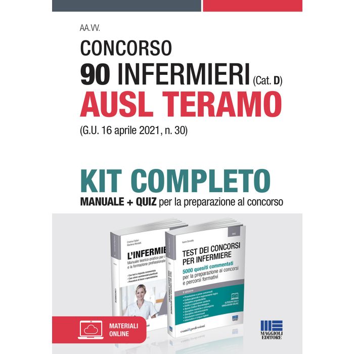 Concorso 90 Infermieri (Cat. D) AUSL Teramo (G.U. 16 aprile 2021, n. 30). Kit completo. Manuale + quiz. Con materiali online