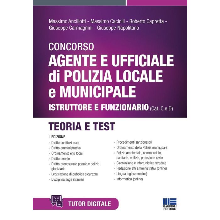 PARTE PRIMA LA POLIZIA LOCALE Capitolo 1 La Polizia locale (e provinciale) come organo e funzione 1.1 L’agente di Polizia locale (e provinciale) all’interno della Pubblica Amministrazione. Chi è e cosa fa il “vigile urbano” 1.2 La Polizia locale. L’impianto normativo di riferimento. Le competenze di Stato, regioni e comuni (o province) 1.3 La Polizia locale come funzione. L’ordinamento della Polizia locale 1.4 Gli attori della Polizia locale: sindaco e addetti al servizio di Polizia locale 1.5 Il Corpo ed il Servizio di Polizia locale (municipale o provinciale) 1.6 L’organizzazione del servizio di Polizia locale. I “gradi” degli addetti al servizio di Polizia locale 1.7 Le qualifiche degli appartenenti alla Polizia locale (municipale e provinciale) 1.8 L’armamento della Polizia locale (municipale e provinciale) 1.9 Servizi di collegamento e di rappresentanza e servizi esplicati fuori dal territorio dell’ente di appartenenza 1.10 L’inquadramento organico della Polizia locale nell’ambito dell’ente di appartenenza 1.11 Estensione ad altri enti locali delle disposizioni della legge-quadro 7 marzo 1986, n. 65 1.12 La Polizia provinciale (cenni) 1.13 Le responsabilità collegate al ruolo di agente di Polizia locale (municipale e provinciale) 1.13.1 La responsabilità civile verso terzi 1.13.2 La responsabilità amministrativa 1.13.3 La responsabilità contabile 1.13.4 La responsabilità disciplinare 1.13.5 La responsabilità dirigenziale 1.13.6 La responsabilità penale (rinvio) LE MATERIE DI INQUADRAMENTO GENERALE Capitolo 1 Nozioni di diritto costituzionale 1.1 Le fonti del diritto: norma ordinamento giuridico e fonti del diritto LE MATERIE DI INQUADRAMENTO GENERALE Capitolo 1 Nozioni di diritto costituzionale** 1.1 Le fonti del diritto: norma ordinamento giuridico e fonti del diritto 1.1.1 La gerarchia delle fonti del diritto nazionale o interno 1.1.2 La gerarchia delle fonti del diritto internazionale 1.1.3 Il rapporto di gerarchia tra le fonti del diritto nazionale e le fonti del diritto internazionale 1.2 La Costituzione della Repubblica Italiana 1.2.1 La Costituzione materiale: i Principi fondamentali 1.2.2 I diritti e i doveri dei cittadini 1.3 L’ordinamento della Repubblica 1.3.1 Il Parlamento e la funzione legislativa 1.3.2 Il Presidente della Repubblica 1.3.3 Il Governo, la Pubblica Amministrazione e gli organi ausiliari 1.3.4 La Magistratura e le norme sulla giurisdizione 1.3.5 Le regioni, le province, i comuni 1.3.6 Le garanzie costituzionali e la Corte costituzionale Capitolo 2 Elementi di diritto amministrativo 2.1 La Pubblica Amministrazione, il diritto amministrativo ed i principi dell’azione amministrativa 2.2 L’attività della Pubblica Amministrazione (funzioni e servizi) 2.3 Il provvedimento amministrativo 2.3.1 Struttura del provvedimento 2.3.2 Caratteristiche del provvedimento 2.3.3 Patologia del provvedimento e autotutela 2.4 Il procedimento amministrativo 2.5 Gli istituti di semplificazione amministrativa 2.5.1 La conferenza di servizi 2.5.2 Gli accordi tra le Pubbliche Amministrazioni 2.5.3 Il silenzio assenso 2.5.4 La Segnalazione Certificata di Inizio Attività 2.5.5 Il silenzio tra le Amministrazioni 2.6 Il diritto di accesso agli atti amministrativi 2.7 Il rapporto di impiego con la Pubblica Amministrazione 2.7.1 La separazione di poteri tra la funzione di indirizzo politico e la funzione gestionale 2.7.2 Impiego pubblico privatizzato ed impiegati in regime di diritto pubblico 2.7.3 Le procedure di reclutamento dei dipendenti pubblici 2.7.4 La disciplina del rapporto di lavoro 2.7.5 Controversie relative ai rapporti di lavoro 2.8 Il codice dei contratti e l’attività negoziale della Pubblica Amministrazione Capitolo 3 Nozioni di diritto degli enti locali 3.1 L’autonomia locale 3.1.1 Le funzioni del comune, della provincia e delle città metropolitane (Roma Capitale) 3.1.2 L’autonomia statutaria e regolamentare 3.1.3 I regolamenti che prevedono sanzioni amministrative 3.1.4 Gli istituti di partecipazione e democrazia diretta di livello locale 3.1.5 Modifiche territoriali e decentramento 3.1.6 Comunità montane, comunità isolane 3.1.7 Le forme di collaborazione tra enti locali: unioni di comuni, convenzioni, consorzi ed accordi di programma 3.2 L’ordinamento istituzionale e l’organizzazione del comune e della provincia 3.2.1 Il consiglio comunale 3.2.2 La giunta comunale 3.2.3 Il sindaco 3.2.4 Gli organi della provincia e della città metropolitana 3.2.5 Organizzazione e personale: la gestione, i dirigenti, il segretario comunale e il direttore generale 3.2.6 I servizi pubblici locali 3.2.7 I controlli 3.3 Autonomia finanziaria, autonomia di bilancio, autonomia contabile 3.3.1 La programmazione (PIAO, DUP, bilancio e PEG) e la rendicontazione 3.3.2 La tempestività dell’approvazione del bilancio: esercizio provvisorio e gestione provvisoria 3.3.3 I principi del bilancio 3.3.4 La struttura del bilancio 3.3.5 La gestione del bilancio 3.3.6 I debiti fuori bilancio 3.3.7 I controlli sulla corretta gestione finanziaria e contabile degli enti locali 3.3.8 Il dissesto economico-finanziario Capitolo 4 Nozioni di diritto penale SEZIONE A - PARTE GENERALE 4.1 Le varie tipologie di illecito soggette al controllo di un agente di Polizia locale (municipale e provinciale). L’importanza della loro corretta individuazione 4.2 Il diritto penale 4.3 Norme di diritto penale 4.4 Il diritto penale nella Costituzione 4.5 I principi del codice penale 4.5.1 Il principio di legalità 4.6 La definizione di reato 4.6.1 Delitti e contravvenzioni 4.7 Il principio di materialità 4.7.1 La condotta 4.7.2 L’evento 4.7.3 Il nesso di causalità tra condotta ed evento 4.7.4 Le cause di esclusione del rapporto di causalità. Il caso fortuito e la forza maggiore 4.8 Il principio di offensività 4.8.1 La nozione del principio di offensività. La necessaria offesa al bene giuridico protetto dalla norma 4.8.2 Il bene (o oggetto) giuridico oggetto del reat
