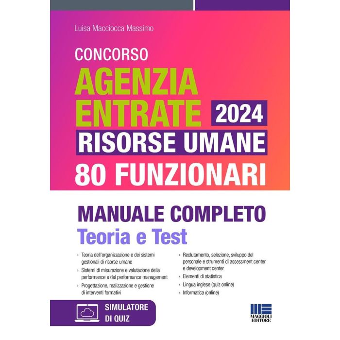 LIBRO PRIMO TEORIE DELL’ORGANIZZAZIONE E DEI SISTEMI GESTIONALI DI RISORSE UMANE RECLUTAMENTO E SELEZIONE DEL PERSONALE PROGETTAZIONE, REALIZZAZIONE E GESTIONE DI INTERVENTI FORMATIVI SISTEMI DI MISURAZIONE E VALUTAZIONE DELLA PERFORMANCE E DEL PERFORMANCE MANAGEMENT Introduzione Capitolo 1 Le teorie dell’organizzazione e dei sistemi gestionali di risorse umane 1.1 I cambiamenti che le organizzazioni devono affrontare e gestire 1.1.1 La Direzione risorse umane, il cambiamento e gli strumenti gestionali 1.1.2 Le attività e i ruoli della Direzione risorse umane 1.1.2.1 Le attività della Direzione risorse umane 1.1.2.2 I ruoli impegnati nella gestione e nella valorizzazione delle risorse umane 1.1.3 Le decisioni strategiche, la continua digitalizzazione e le competenze 1.1.4 La Direzione risorse umane e la Digital Transformation 1.1.5 La competizione strategica 1.1.5.1 Le offerte impossibili 1.1.6 Le risorse umane e il managerial thinking 1.1.7 Le risorse umane e la customer satisfaction 1.1.8 L’impresa eccellente 1.1.9 Il management alla guida del successo dell’impresa 1.1.9.1 Le scelte del vertice aziendale 1.2 L’evoluzione degli stili di gestione 1.2.1 Un intervento metodologico 1.2.2 L’ordine, la razionalità, la specializzazione 1.2.3 I principi del management scientifico 1.2.4 La scienza dell’amministrazione 1.2.5 Le critiche al management scientifico 1.2.6 Il cammino verso un cambiamento culturale 1.2.7 Il sistema burocratico 1.2.8 I tumulti operai e l’opinione pubblica 1.3 Il ruolo delle Relazioni umane nell’impresa 1.3.1 Gli esperimenti sulle relazioni interpersonali 1.3.2 L’importanza dei rapporti fra i dipendenti 1.3.3 Una efficace leva produttiva: la motivazione 1.3.3.1 Ishikawa e i circoli della qualità 1.3.4 I cinque gradini per agire 1.3.5 I fattori motivanti e i fattori igienici 1.4 Le risorse diventano umane 1.4.1 Il lavoro di gruppo 1.4.2 La dimensione del gruppo al lavoro 1.4.3 La condivisione dei valori 1.5 Le risorse umane e le competenze per il cambiamento 1.5.1 Le risorse umane e i beni di valore 1.5.2 Il benchmarking misura il valore delle risorse umane 1.6 La gestione del cambiamento 1.6.1 Il vertice e la base si avvicinano: l’impresa sistemica 1.6.2 Non problemi, ma soluzioni 1.7 Le risorse umane e la qualità delle competenze 1.8 La cultura dell’organizzazione 1.8.1 La comunità e la società 1.8.2 I valori, la missione e le relazioni interne 1.9 Lo scambio di vantaggi 1.9.1 La ricompensa come oggetto di scambio 1.9.2 La valutazione del bene immaterial 1.10 Le risorse umane: dal carattere organizzativo alla struttura sociale 1.10.1 Le risorse umane e il carattere 1.11 L’etica aziendale 1.12 La responsabilità sociale delle imprese 1.13 Le Benefit Corporation (B Corp) 1.14 L’evoluzione della funzione del personale e il contesto sociale 1.14.1 Le politiche e l’organizzazione del personale 1.14.2 La direzione/gestione delle risorse umane 1.15 L’evoluzione della funzione del personale e delle relazioni industriali 1.15.1 I momenti di crescita della funzione del personale 1.16 Fino agli anni ’50: ruolo amministrativo/normativo 1.17 Anni ’60: aumento dell’identità e dei compiti 1.17.1 La figura del capo-ufficio 1.18 Anni ’70: gestione della conflittualità sindacale 1.18.1 I nuovi temi di riflessione organizzativa 1.19 Anni ’80: coinvolgimento nelle decisioni del vertice aziendale 1.19.1 La complessità 1.19.2 Una parola impegnativa 1.19.3 L’organizzazione in una prospettiva complessa 1.20 Dagli anni ’90: ruolo strategico per affrontare il mercato. Il computer sulle scrivanie 1.20.1 La rete, la digitalizzazione e la società dell’informazione. E-Italy 1.20.2 La rete e l’ampiezza del fenomeno del networking 1.20.2.1 Le comunità di pratica 1.20.2.2 La rete e l’uso dei social network 1.20.2.3 I “social”: Twitter (X), Facebook e LinkedIn 1.20.2.4 YouTube, Flickr, SlideShare 1.20.2.5 Il blogging delle imprese 1.20.3 La conoscenza e gli “intangible assets” 1.20.3.1 Le project communities 1.20.3.2 Le professional communities 1.20.4 I gruppi che si alleano e competono con successo 1.20.5 La tribù aziendale 1.21 La struttura organizzativa 1.21.1 La struttura organizzativa e l’organigramma 1.21.2 I modelli tradizionali di struttura organizzativa 1.21.2.1 La struttura funzionale 1.21.2.2 I vantaggi e i rischi della struttura funzionale 1.21.3 La struttura divisionale 1.21.3.1 I vantaggi e i rischi della struttura divisionale 1.21.4 La struttura per progetti 1.21.4.1 I vantaggi e i rischi della struttura per progetti 1.21.5 La struttura a matrice 1.21.5.1 I vantaggi e i rischi della struttura a matrice 1.21.6 La logica di funzionalità 1.22 L’organizzazione per processi 1.23 Come un network può presidiare i mercati globali 1.23.1 Oltre il network 1.24 I ruoli aziendali 1.25 La job description, il job profile, la job analysis 1.26 La job evaluation 1.27 Il ciclo di pianificazione, gestione e sviluppo delle risorse umane 1.28 Il ruolo della Direzione risorse umane nella gestione del cambiamento 1.28.1 Gli elementi comuni nel cambiamento 1.29 L’organizzazione liquida e la flessibilità organizzativa 1.30 Lo smart working, dalla pandemia da Covid-19 al ritorno in azienda 1.30.1 Smart working e lavoro agile 1.30.2 Smart working e pandemia 1.30.3 La comunicazione aziendale durante la pandemia 1.30.4 Il ritorno in azienda Questionario n. 1 - Teorie dell’organizzazione e dei sistemi gestionali di risorse umane Soluzioni al questionario n. 1 Capitolo 2 Il reclutamento e la selezione del personale 2.1 La necessità di assumere 2.1.1 Il processo che conduce alla ricerca di personale (Talent Acquisition) 2.2 Il job posting 2.3 L’organizzazione interna per la selezione 2.4 Le motivazioni ad assumere 2.5 La posizione vacante e il profilo del candidato ideale 2.6 L’organizzazione della selezione 2.7 L’attività di reperimento delle candidature 2.7.1 Le fonti interne 2.7.2 Le fonti esterne 2.7.2.1 Gli elenchi di diplo