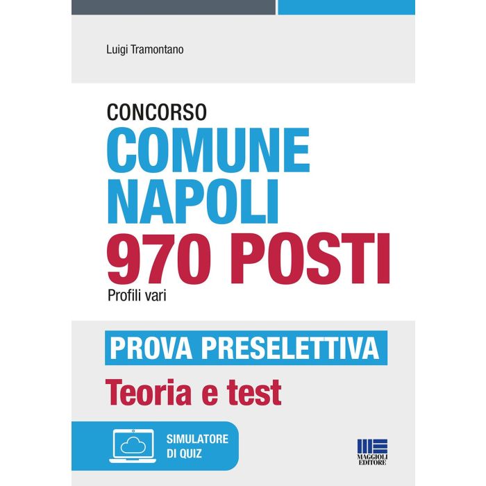 Il volume si presenta come utile strumento di preparazione alla prova preselettiva del bando di concorso indetti dal Comune di Napoli per vari profili. La selezione consisterĂ in un test di domande a risposta multipla sulle materie comuni ai vari profili. Il testo presenta una trattazione chiara e completa su tutte le materie comuni a tutti i profili, ovvero: Diritto costituzionale; Diritto amministrativo; Pubblico impiego; Trasparenza, anticorruzione e privacy; Diritto e contabilitĂ degli enti locali; Diritto penale e reati contro la P.A. Nella sezione online collegata, raggiungibile seguendo le istruzioni riportate in fondo al libro, sono disponibili anche: quiz di lingua inglese; teoria e quiz di informatica; simulatore di quiz sulle materie comuni, per allenarsi in vista della prova.