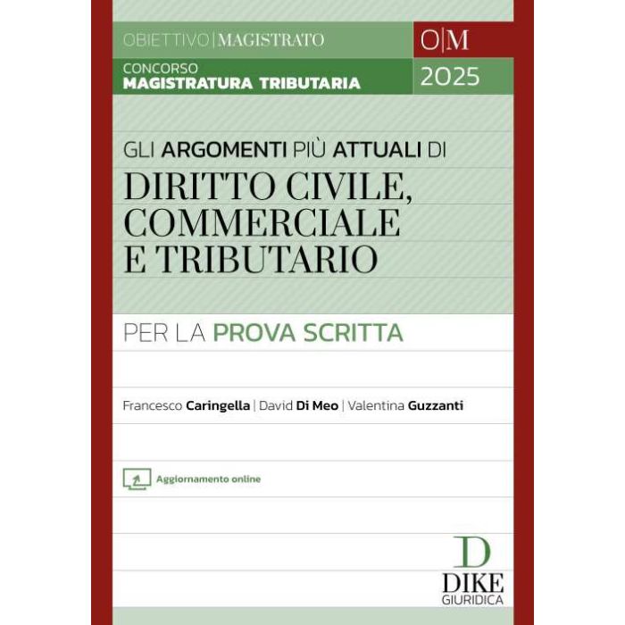 Il volume Concorso Magistratura Tributaria. Gli argomenti più attuali di Diritto Civile, Commerciale e Tributario per la prova scritta è indirizzato a coloro che devono affrontare la prova del concorso per Magistrati tributari. Il testo: dota i concorsisti di una bussola nella ricerca delle tematiche sulle quali possono essere chiamati a misurarsi nella prova scritta del concorso nella magistratura tributaria focalizza l'attenzione su questioni particolari trascurati dalla manualistica tradizionale, è aggiornato alle più recenti novità normative e giurisprudenziali è scritto da magistrati del Consiglio di Stato e della Corte dei conti e da un legale di un noto studio tributario Per approfondire la preparazione al concorso per magistrati tributari, si rimanda anche al volume La sentenza Tributaria (cod. OMTR2) oltre che il Manuale Maior del Processo Tributario (Cod. MM6) e la La Riforma del Processo Tributario (cod. NL4/1).