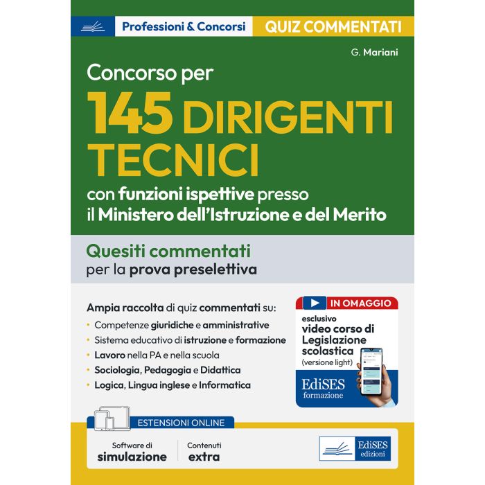 Concorso per 145 Dirigenti Tecnici presso il Ministero dell'Istruzione e del Merito - Test commentati. Quesiti commentati per la prova preselettiva. Con software online e videocorso
