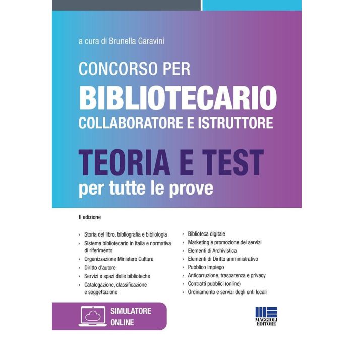 PARTE QUINTA L’AFFIDAMENTO DEI CONTRATTI PUBBLICI Rinvio PARTE SESTA SIMULAZIONI Simulazione 1 – Istruttore direttivo bibliotecario (cat. D) presso il Comune di Firenze Soluzioni alla simulazione 1 Simulazione 2 – Categoria C dell’area delle biblioteche presso l’Università degli studi di Trieste Soluzioni alla simulazione 2 Simulazione 3 – Istruttore direttivo bibliotecario (cat. C) presso il Comune di Padova Soluzioni alla simulazione 3 Simulazione 4 – Istruttore direttivo bibliotecario (cat. C) presso il Comune di Padova Soluzioni alla simulazione 4 |