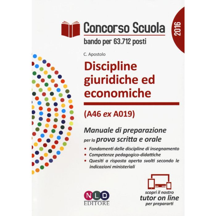 Una completa e compiuta fusione di conoscenze e competenze è quello che si chiede oggi alla nuova generazione di docenti che si preparano ad affrontare il nuovo Concorso a cattedra 2016, alla luce dei contenuti della L. n. 107 del 13 luglio 2015, che ha riformato il sistema nazionale di istruzione e formazione: non è, dunque, solo una questione di contenuti, ma si lavora affinché il reclutamento sia capace di individuare, prima di ogni altra caratteristica, qualità o quantità di contenuti, l'autentica attitudine all'insegnamento. Alla luce di queste premesse, questo volume, dedicato alle Discipline Giuridiche ed economiche, ha l'ambizione di proporsi come uno strumento per la preparazione al concorso completo, esaustivo, versatile e costruttivo. Il volume risulta essere strutturato in 3 parti: I Fondamenti della disciplina di insegnamento; Competenze pedagogico-didattiche; Quesiti a risposta aperta svolti secondo le indicazioni ministeriali.