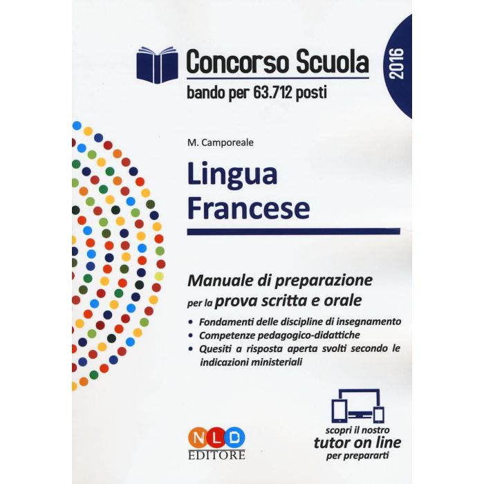Una completa e compiuta fusione di conoscenze e competenze è quello che si chiede oggi alla nuova generazione di docenti che si preparano ad affrontare il nuovo Concorso a cattedra 2016, alla luce dei contenuti della L. n. 107 del 13 luglio 2015, che ha riformato il sistema nazionale di istruzione e formazione: non è, dunque, solo una questione di contenuti, ma si lavora affinché il reclutamento sia capace di individuare, prima di ogni altra caratteristica, qualità o quantità di contenuti, l'autentica attitudine all'insegnamento. Alla luce di queste premesse, questo volume, dedicato alla Lingua Francese, ha l'ambizione di proporsi come uno strumento per la preparazione al concorso completo, esaustivo, versatile e costruttivo. Il volume risulta essere strutturato in 3 parti: I Fondamenti della disciplina di insegnamento; Competenze pedagogico-didattiche; Quesiti a risposta aperta svolti secondo le indicazioni ministeriali.
