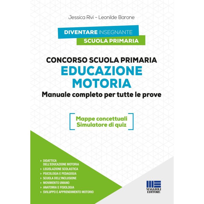 Il volume è un utile strumento per la preparazione alle prove del Concorso per docenti di Educazione motoria nella scuola primaria. Il manuale è ricco di conoscenze scientifiche, pedagogiche, psicologiche, biologiche, metodologico-didattiche e di una variegata e vasta bibliografia. Nella prima parte del testo, si affrontano gli aspetti normativi e giuridici collegati alla legislazione scolastica, con riferimento alle Indicazioni Nazionali del curricolo per la scuola dell'infanzia e del primo ciclo. Il libro analizza, in modo oculato, le principali teorie dello sviluppo psicologico e pedagogico oltre a soffermarsi sull'inclusività, indicando metodologie e attività per l'Educazione Motoria degli alunni BES. Nella seconda parte del testo troviamo importanti dettagli inerenti l'area "scientifica" della materia: in modo preciso e mirato sono intrecciati i contenuti anatomici inerenti l'Educazione Motoria con quelli della fisiologia. Questa peculiarità rappresenta un quid in più nei testi concorsuali tipici di Educazione Motoria. Sono presenti i riferimenti specifici alle funzioni degli apparati nello svolgimento dell'attività motoria, tenendo conto delle diverse fasi di sviluppo e metodologie dell'allenamento, con approfondimenti inerenti le capacità condizionali. La parte relativa alla mediazione didattica e ai contenuti specifici dell'Educazione Motoria nella scuola primaria è ricca di apporti personali che potranno rivelarsi particolarmente utili per la prova scritta, per lo svolgimento della prova orale e per espletare al meglio il ruolo di insegnante. Sono, infine, presenti approfondimenti relativi alla salute, al benessere, al corretto stile di vita, alla normativa di settore, alle Indicazioni Nazionali per il curricolo. Nell'ultima parte è disponibile una selezione di quiz a risposta multipla, utile per esercitarsi in vista della prova scritta e un'utile bibliografia. Nella sezione online sono disponibili un simulatore di quiz, immagini anatomiche a colori e una selezione di mappe concettuali utili per memorizzare i concetti più importanti.