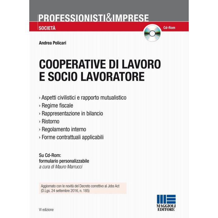 Il rapporto contrattuale che intercorre tra il socio e la cooperativa di lavoro è uno degli argomenti giuslavoristici più dibattuti e controversi degli ultimi anni. Il volume, dopo aver esposto la disciplina delle diverse tipologie di cooperativa di lavoro ed il rapporto mutualistico connesso, analizza dettagliatamente quegli istituti che ne caratterizzano l'aspetto più tipico. Vengono infatti prese in esame le problematiche relative alla posizione del socio lavoratore (diritti, obblighi, esclusione e recesso), il ristorno in favore dei soci con le relative modalità di calcolo, il regime fiscale applicabile alle cooperative, gli aspetti retributivi e previdenziali del socio lavoratore. Non mancano approfondimenti su tipologie di cooperative di particolare diffusione, come quelle agricole, editoriali e giornalistiche, sociali e di trasporto. Questa edizione - che tiene conto della delibera ANAC n. 32/2016, che detta importanti Linee guida per l'affidamento di servizi alle cooperative sociali - è aggiornata con le novità previste dal Decreto correttivo al Jobs Act (D.Lgs. 24 settembre 2016, n. 185) in merito alle forme contrattuali applicabili al socio lavoratore. Su Cd-Rom, un formulario personalizzabile contenente 32 schemi di atti relativi alla vita e all'attività delle cooperative di lavoro.