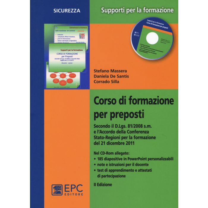 Il D.Lgs. 81/08 attribuisce fondamentale importanza alla formazione nella gestione dell'igiene e della sicurezza sul lavoro. Il legislatore ha disciplinato questa attività nei confronti dei soggetti che a vario titolo sono coinvolti nella gestione della Salute e Sicurezza sul Lavoro. L'Accordo della Conferenza Stato Regioni del 21/12/11 ha dettagliato, tra l'altro, i percorsi formativi dedicati alla fondamentale figura del preposto. Questo prodotto contiene la traccia di un corso di formazione per preposti strutturato secondo le indicazioni dell'art. 37 del D.Lgs. 81/08 e del citato Accordo Stato Regioni così come perfezionato dalle Linee applicative pubblicate il 26/06/2012. Si tratta di un ulteriore testo che va ad arricchire una collana che comprende l'esame dei principali aspetti di salute e sicurezza sul lavoro trattati con il coinvolgimento di professionisti esperti nelle specifiche materie oggetto di approfondimento. La collana risponde quindi all'esigenza di effettuare una raccolta sistematica delle informazioni necessarie per gli incontri di formazione e informazione. Un materiale che può essere facilmente adattato alle specifiche esigenze aziendali e incrementato al mutare delle condizioni e delle normative di riferimento. L'utente potrà quindi adattare ogni prodotto alle specifiche esigenze dell'azienda in esame. Nel CD allegato sono fornite le diapositive in formato power point oltre che i questionari di valutazione e i modelli degli attestati di formazione.