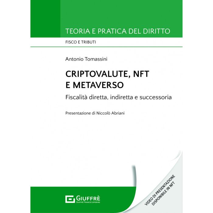 Il mondo digitale è in continua evoluzione, la finanza decentralizzata (DeFi) ed i suoi applicativi crescono in modo inarrestabile. Come per la finanza tradizionale, che ha visto la sua prima manifestazione nella moneta, così per la DeFi la prima manifestazione è stata la criptovaluta. Chiunque può, in pochi minuti, creare un proprio "wallet" presso una delle tante piattaforme di trading in rete e acquistare frazioni di criptovalute presso un exchange. Scopo del Volume è fare chiarezza sulle questioni giuridiche e fiscali del mondo relativo non solo alle criptovalute ma anche agli NFT e al metaverso. Una volta, infatti, definiti il funzionamento e la natura giuridica si analizzano tutti i comparti impositivi, dalle imposte dirette, all'IVA, all'imposta sulle successioni e donazioni.