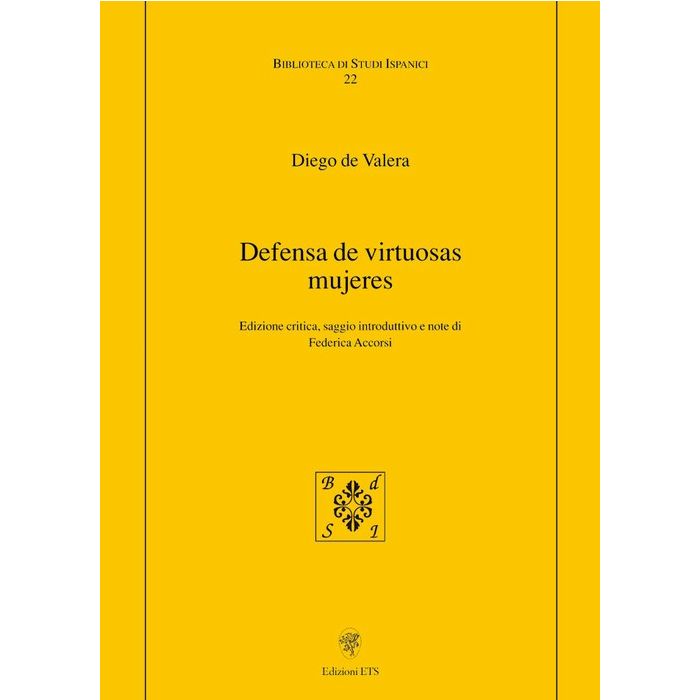 Il principale interesse della Defensa de virtuosas mujeres, curiosa operetta giovanile del poligrafo Diego de Valera, risiede nel suo carattere rappresentativo della cultura castigliana della prima metà del Quattrocento: non solo infatti partecipa della fiorente tradizione ispanica di scritti in vituperio o difesa della donna, ma costituisce anche un'espressione "minore" di tendenze proprie della più significativa produzione letteraria coeva, offrendosi come valido mezzo per esplorarla. La presente edizione si basa su una collazione completa della tradizione manoscritta, stabilendo un testo per certi aspetti inedito dell'opera e, si auspica, più vicino all'originale di quello divulgato da pubblicazioni precedenti.
